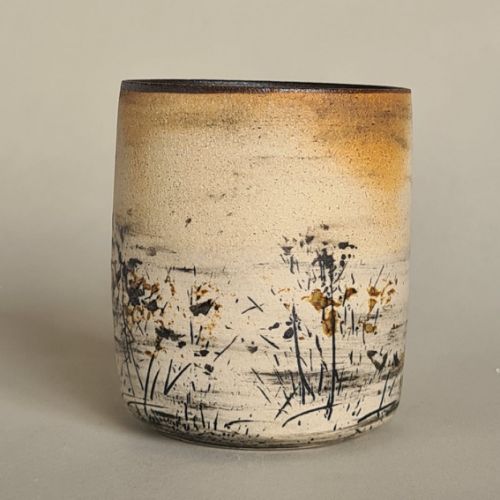 D'abord, au centre, il y a le bol (le bol boule s'il vous plaît). Le galbe tend vers l'idéal rarement dessiné. Puis le moment de l'habiller d'engobes, au toucher chaleureux. Décors des plus sages aux plus sauvages, ils seront mats, polis ou doucement piquants. Mis au point de façon empirique, les engobes deviennent plus aléatoires à mesure que Christina éponge, grave, gratte, frotte ...ou rate (et récupère). Terre de maison et pinceaux de jardin libèrent les points et lignes des débuts, et les accidents de la vie libèrent ses bols : les sauvages gagnent du terrain.