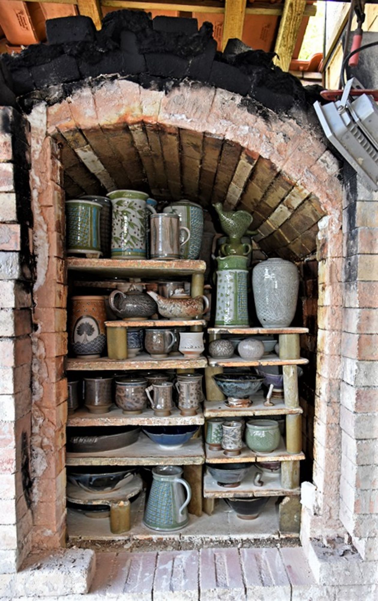 Je me suis installée en Dordogne avec mon compagnon Alain DEVISE (photographe et céramiste) avec qui j’ai construit mes fours à bois. Le 1er de type Sèvres remplacé depuis 4 ans par un four à bois Phoenix de 500 litres plus maniable et plus économe en bois.