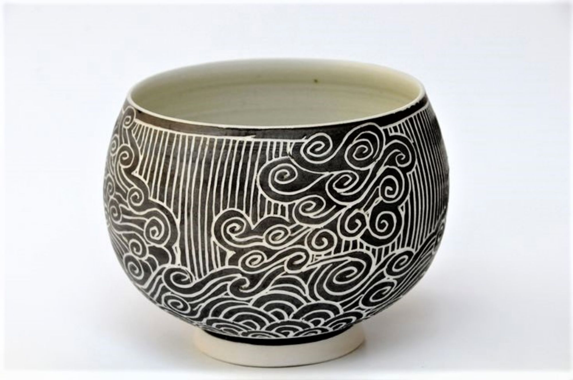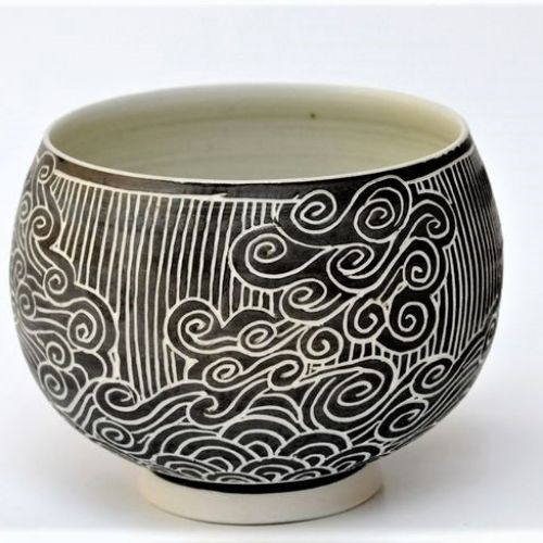 Je me définis comme une potière, qui aime tourner, cuire au bois, et décorer sa poterie utilitaire qui trouvera sa place dans la maison et la vie quotidienne. Je tourne depuis toujours le grès de Saint-Amand-en-Puisaye (Nièvre) en dehors des plats culinaires qui sont fabriqués dans une terre à feu . J’utilise aussi la porcelaine de limoges engobée et sgraffitée. J’aime le grès pour sa solidité, pour les couleurs douces et satinées de ses glaçures, et pour son aspect général plus proche de la nature qui nous entoure. Depuis plusieurs années j’aime particulièrement graver dans l’argile engobée en développant une démarche artistique personnelle du décor. C’est devenu progressivement ma marque de fabrique.
