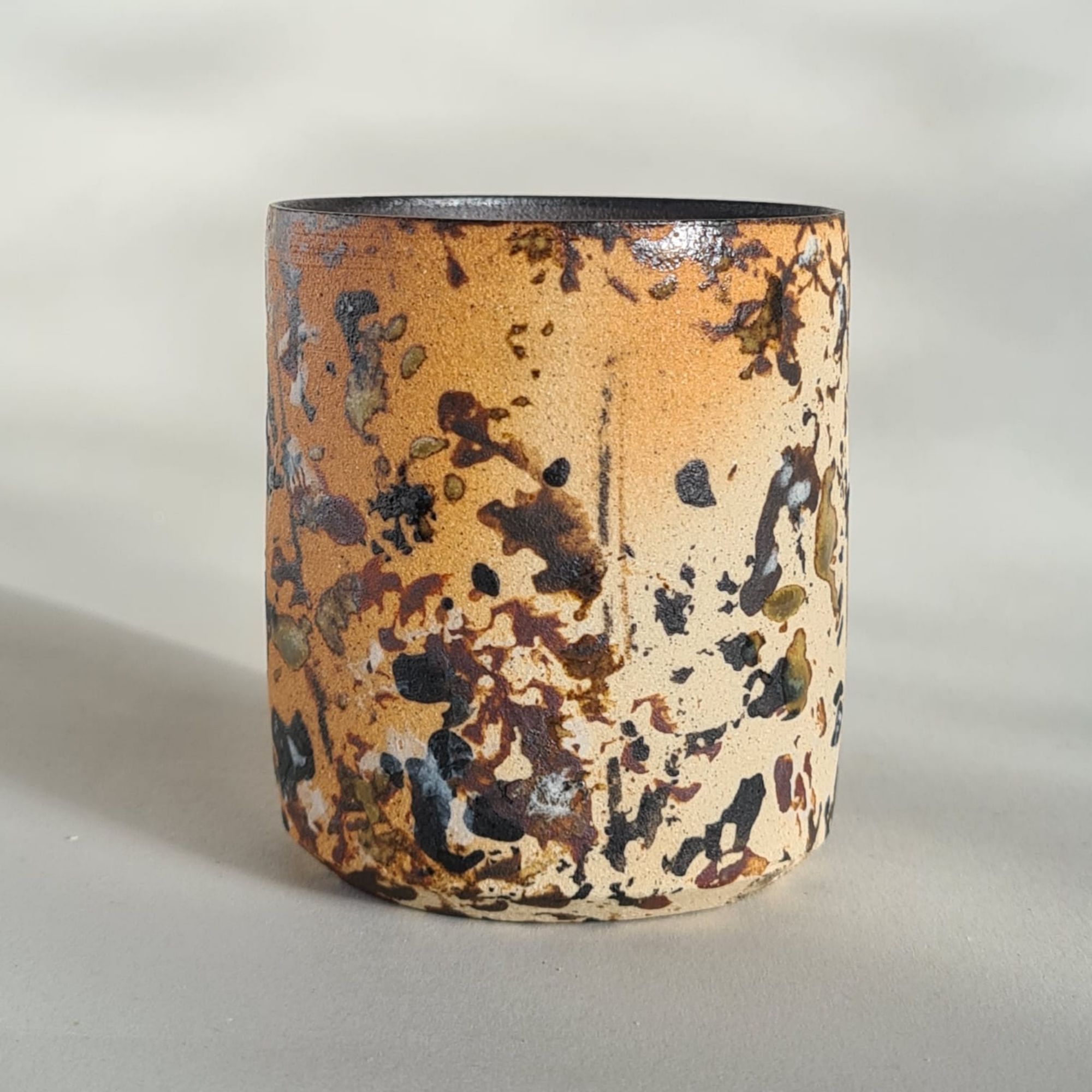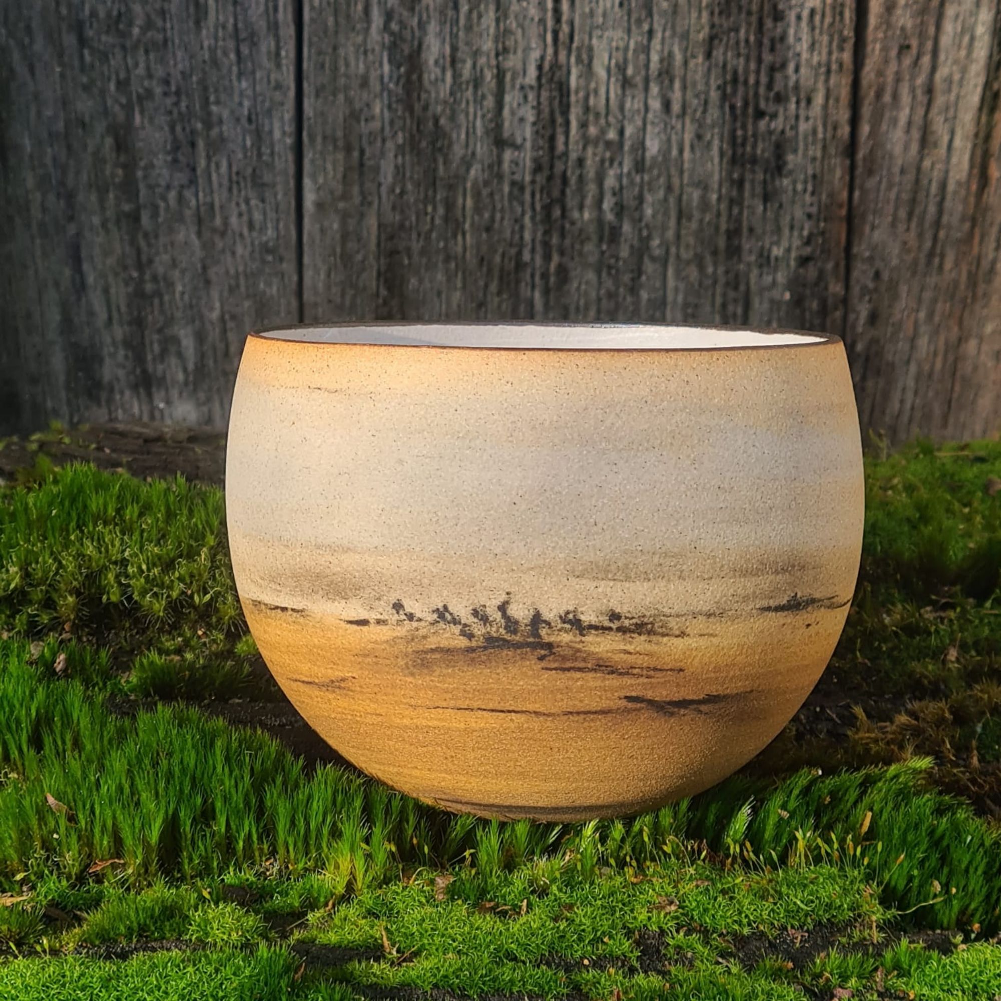 D'abord, au centre, il y a le bol (le bol boule s'il vous plaît). Le galbe tend vers l'idéal rarement dessiné. Puis le moment de l'habiller d'engobes, au toucher chaleureux. Décors des plus sages aux plus sauvages, ils seront mats, polis ou doucement piquants. Mis au point de façon empirique, les engobes deviennent plus aléatoires à mesure que Christina éponge, grave, gratte, frotte ...ou rate (et récupère). Terre de maison et pinceaux de jardin libèrent les points et lignes des débuts, et les accidents de la vie libèrent ses bols : les sauvages gagnent du terrain.
