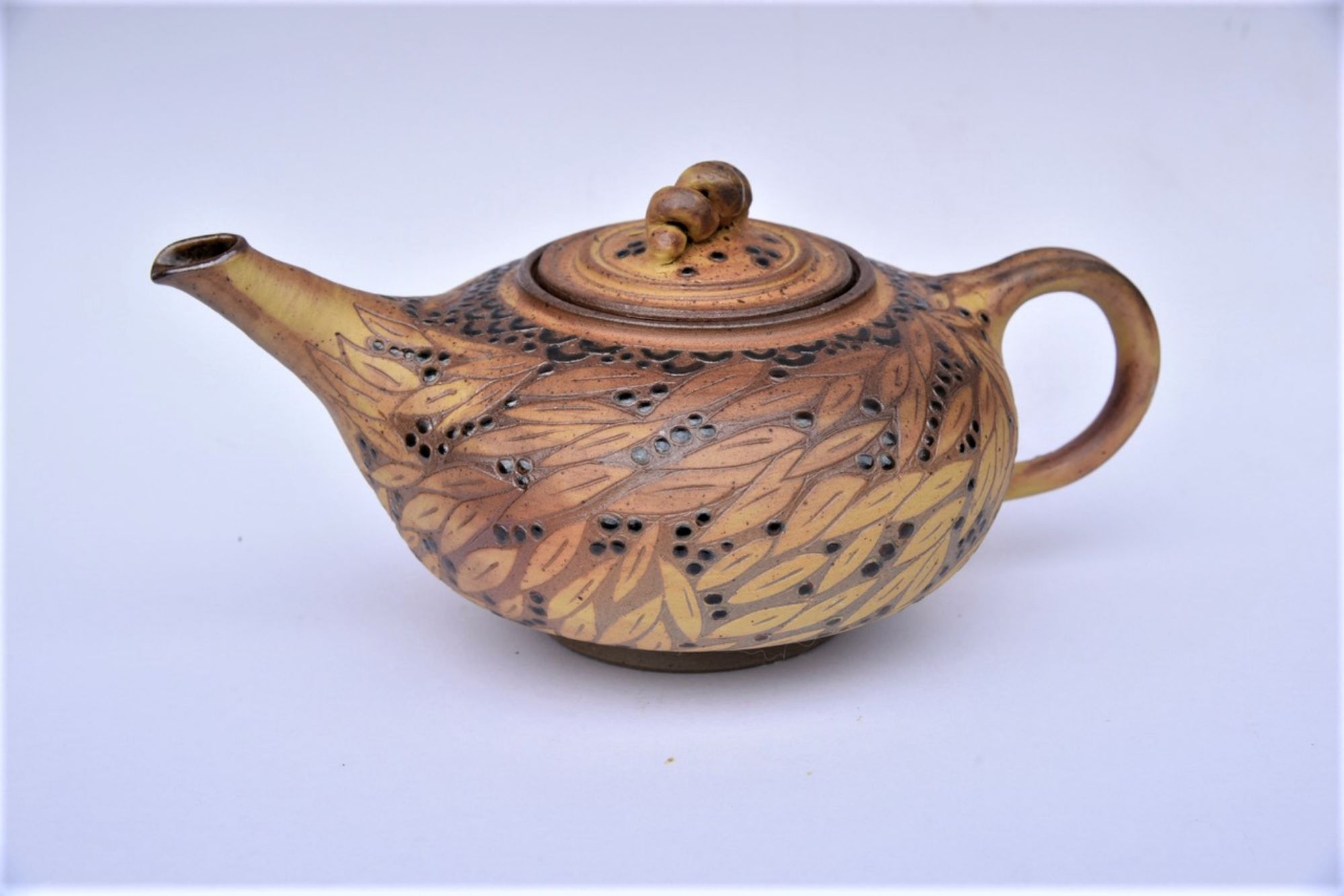 Je me définis comme une potière, qui aime tourner, cuire au bois, et décorer sa poterie utilitaire qui trouvera sa place dans la maison et la vie quotidienne. Je tourne depuis toujours le grès de Saint-Amand-en-Puisaye (Nièvre) en dehors des plats culinaires qui sont fabriqués dans une terre à feu . J’utilise aussi la porcelaine de limoges engobée et sgraffitée. J’aime le grès pour sa solidité, pour les couleurs douces et satinées de ses glaçures, et pour son aspect général plus proche de la nature qui nous entoure. Depuis plusieurs années j’aime particulièrement graver dans l’argile engobée en développant une démarche artistique personnelle du décor. C’est devenu progressivement ma marque de fabrique.