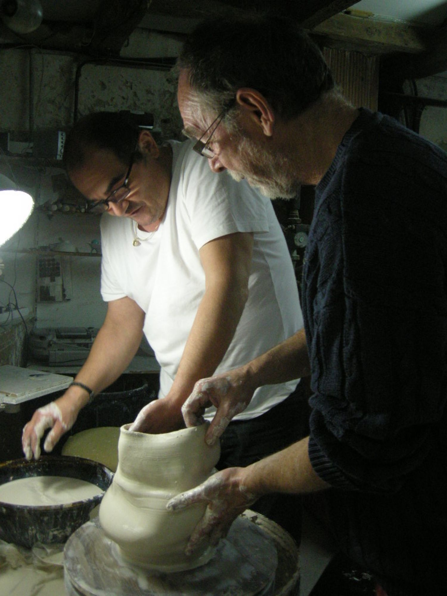 À part les pots de jardins qui sont en grès ou en terre réfractaire, toute sa production est en porcelaine. Il prépare lui-même ses terres et sa porcelaine qu’il cuit à 1320°.